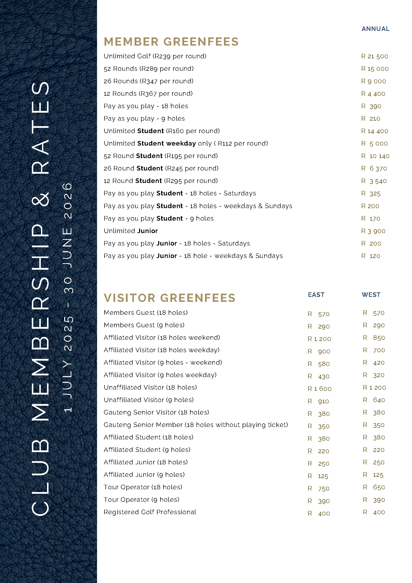 Nestled in the heart of Johannesburg, lie two of South Africa’s finest parkland golf courses. The Club is conveniently close to the business hub of Sandton and with OR Tambo International Airport just a 15 minute drive, the Gautrain Rapid Rail system offers convenient transportation from OR Tambo International Airport to Sandton within 14 minutes.